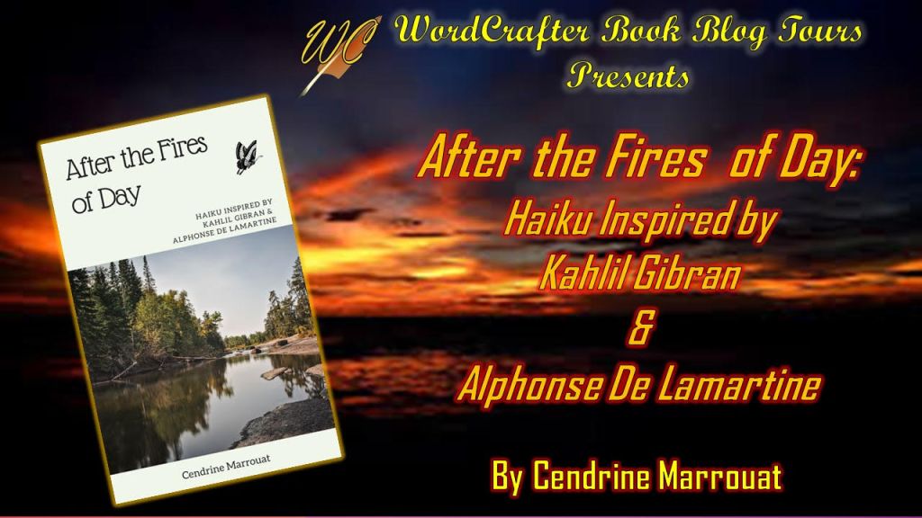 We’re wrapping up the WordCrafter After the Fires of Day Book Blog Tour with Tori Zigler over at Zigler’s news, where we’ve featured a guest post and one last review of Cendrine Marrouat’s After the Fires of Day: Haiku Inspired by Kahlil Gibran and Alphonse de Lemartine. I hope you’ll join us in finishing up this great send off for her new release and learn more about her inspiration for this book.