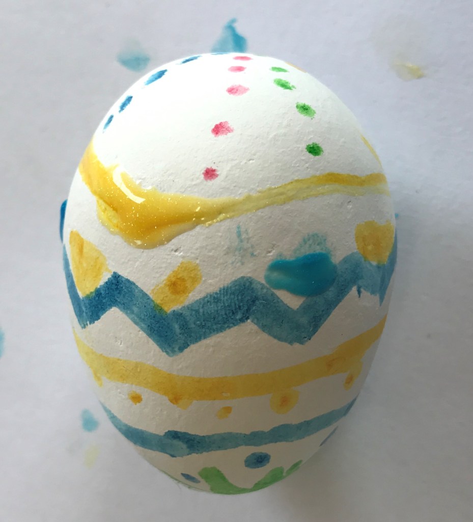 Painting Easter eggs with food colouring is great fun. I used the white candy coated ‘hens’ eggs for this activity and liquid food colouring. Be careful to use aprons as the food colouring stains. Here are the Easter eggs some of the children in my Sunday School painted a few years ago.