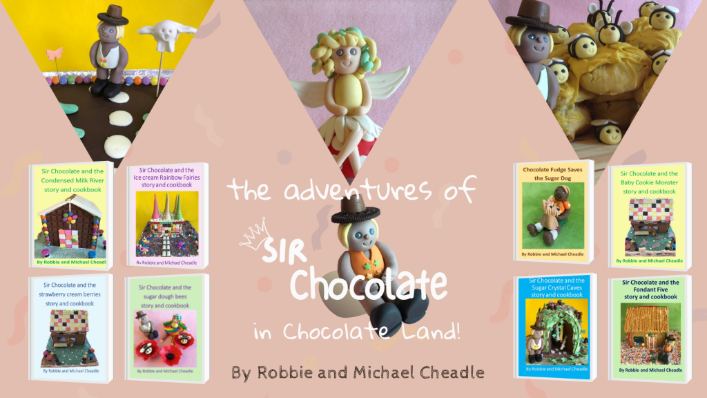The 7 Sir Chocolate children’s picture books, co-authored by Robbie and Michael Cheadle, are written in sweet, short rhymes which are easy for young children to follow and are illustrated with pictures of delicious cakes and cake decorations. Each book also includes simple recipes or biscuit art directions which children can make under adult supervision.