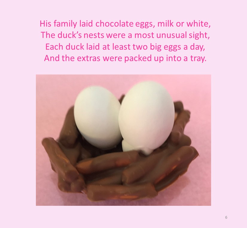 Hi Diana, I am glad you enjoyed this little story. I saw that you painted real egg shells as a girl. There is a tradition of painting ostrich eggs here in South Africa. Of course, ostrich eggs are 30 times bigger than hens eggs so they are quite a big canvas. These eggs look just like hens but they are chocolate inside and coated with white candy on the outside.