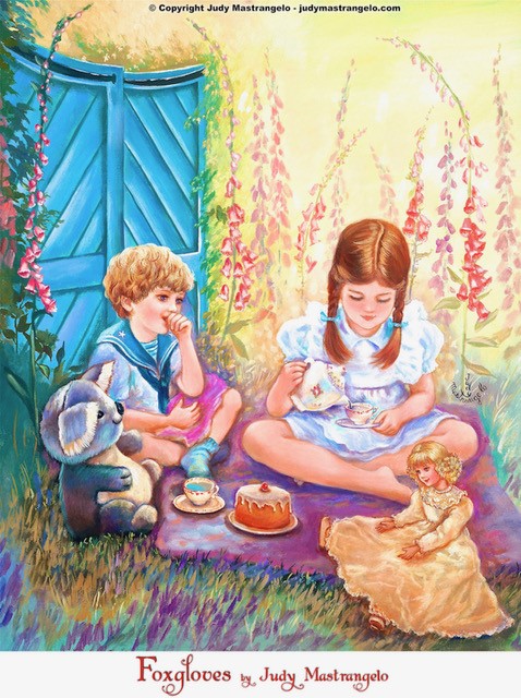 Judy has also included some of her own original poems that she wrote and illustrated, such as the “Graceful Swan Boat”, in which you can sail away “to lands where dreams are born”. From her series “Garden Gates”, you will enjoy playing with children in the Buttercups, having a Foxglove Tea Party, marching in a Tulip Parade, and making a wish on a Water Lily Pond.