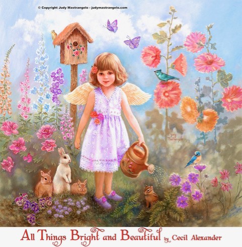 Artist Judy Mastrangelo’s magical and colorful paintings beautifully bring to life this collection of famous and beloved poetry, written by great poets of the past. Here are a few of her favorite poems she has chosen to illustrate for this enchanting anthology: