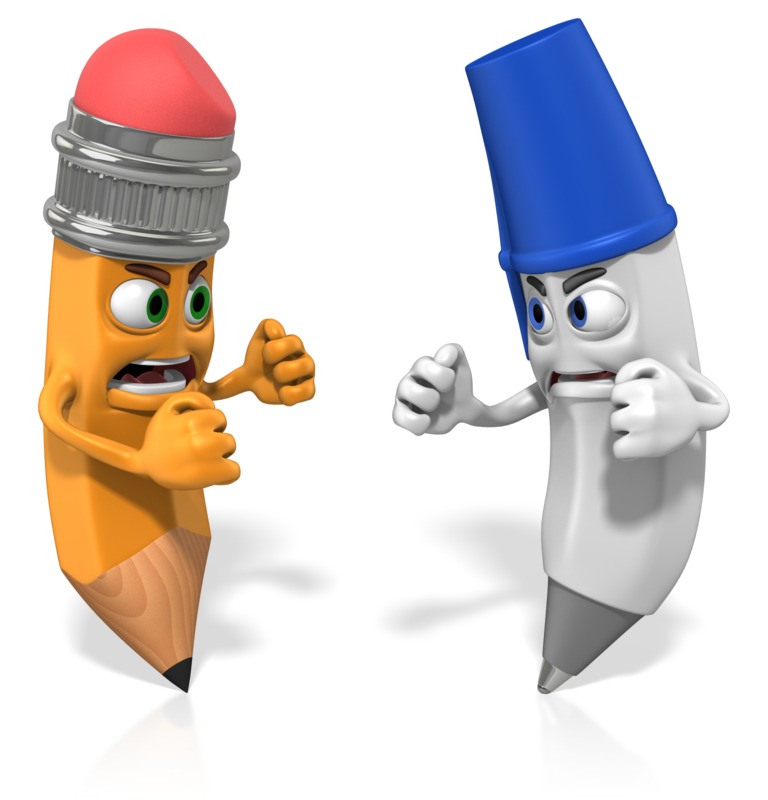 Cartoon Pen and Pencil on their points with fists up
