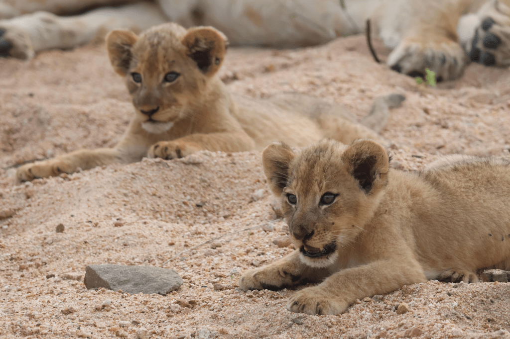 Two lion cubs and