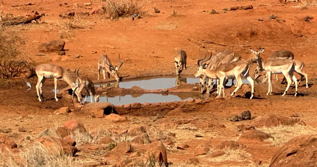 Ten impala a-watering