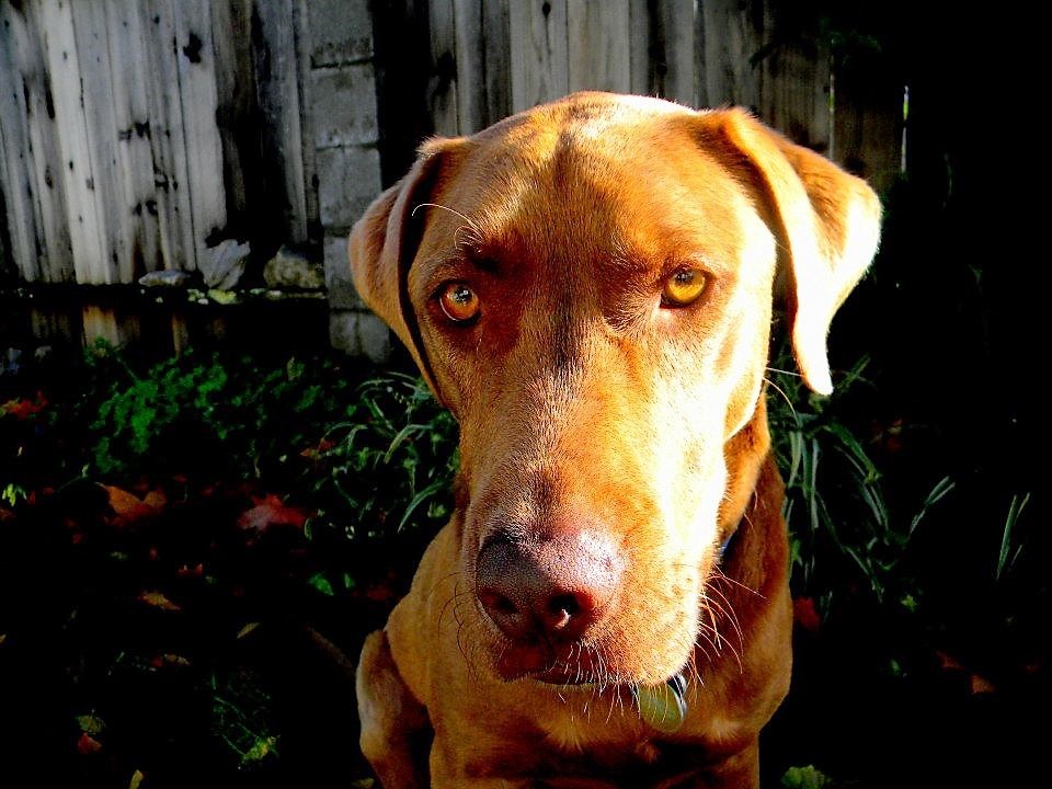 Copper was lovable and had amber eyes that saw right into our souls. He was the perfect walking partner and freely gave slobbery kisses. He always made us laugh when he thought he was a chihuahua trying to sit on our laps; her grew into 80 lbs. of muscle.