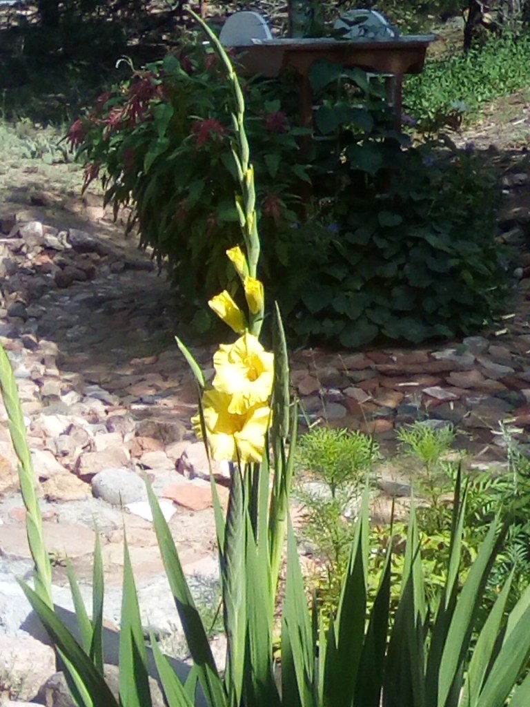 I made a lot of progress last summer and into the fall, and the work continues. It seems to be an ongoing process. I don’t know if it will ever be completely finished, because I seem to always be inspired in new and different ways. This year, the rock work has all come together well, and I added a couple more Butterfly Bushes, Westeria, Daylillies, and a Rose. The quartz rock garden had Iris blooms in both yellow and purple. I planted a wild flower patch near the ‘water garden’ opposite the Pussy Willow, and added a larger trellis and three tier grecian urn planter. I threw some mixed flower seeds and Love Lies Bleeding in with the Glads in the bathtub garden, which has now turned into a small forest in which I can no longer find the Gladiolas. I didn’t know that Love Lies Bleeding could grow so tall and I planted it everywhere, but it certainly makes my yard look spectacular.