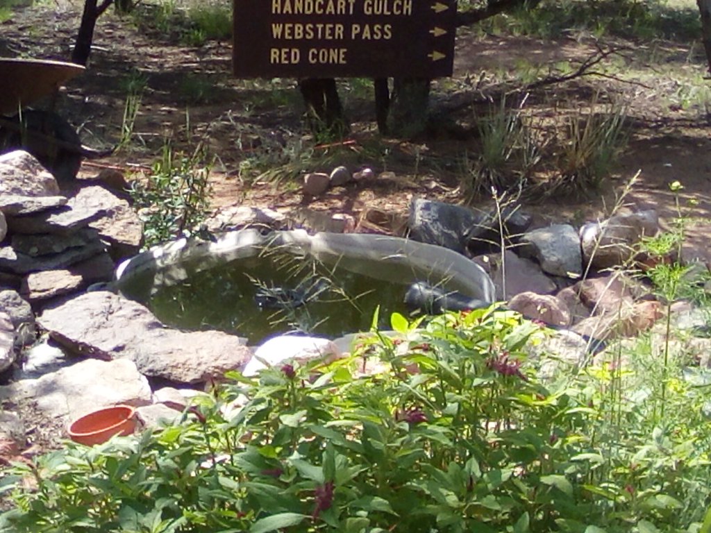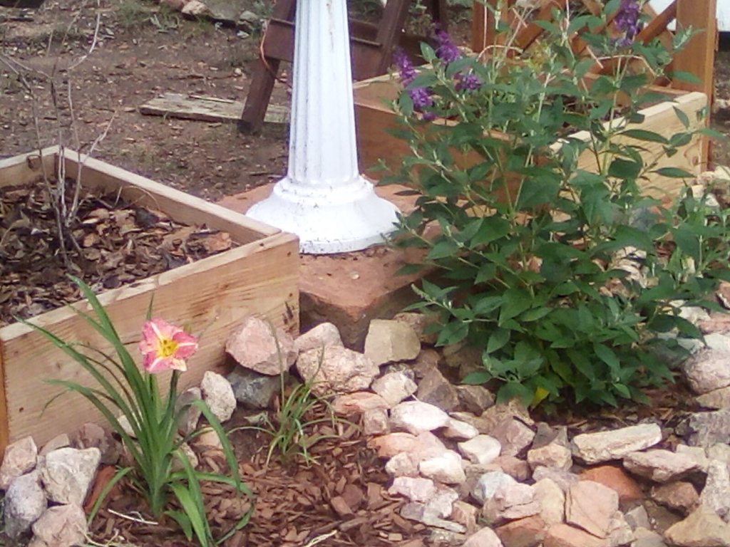 Looking out over my yard today, I am taken aback with what I have accomplished over the years. For the first years that I had this beautiful mountain property, there wasn’t much except the natural forest, as far as landscaping goes. I started out by creating a quartz rock garden with a few Irises, which I had transplanted from my old home in Canon City and a few old metal wash pans with rocks placed in them for the birds to bathe in. I added to quartz to that garden for many years, but didn’t do much else as the focus was on getting a cabin built.