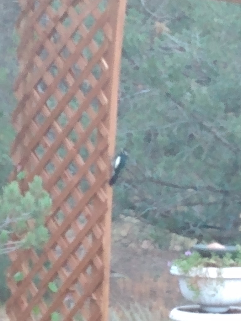 - Woodpeckers are frequent visitors, and some years they nest in the sanctuary. The one in the seventh photo is either a Strickland’s or a Nutall’s Woodpecker. I’m not sure which.