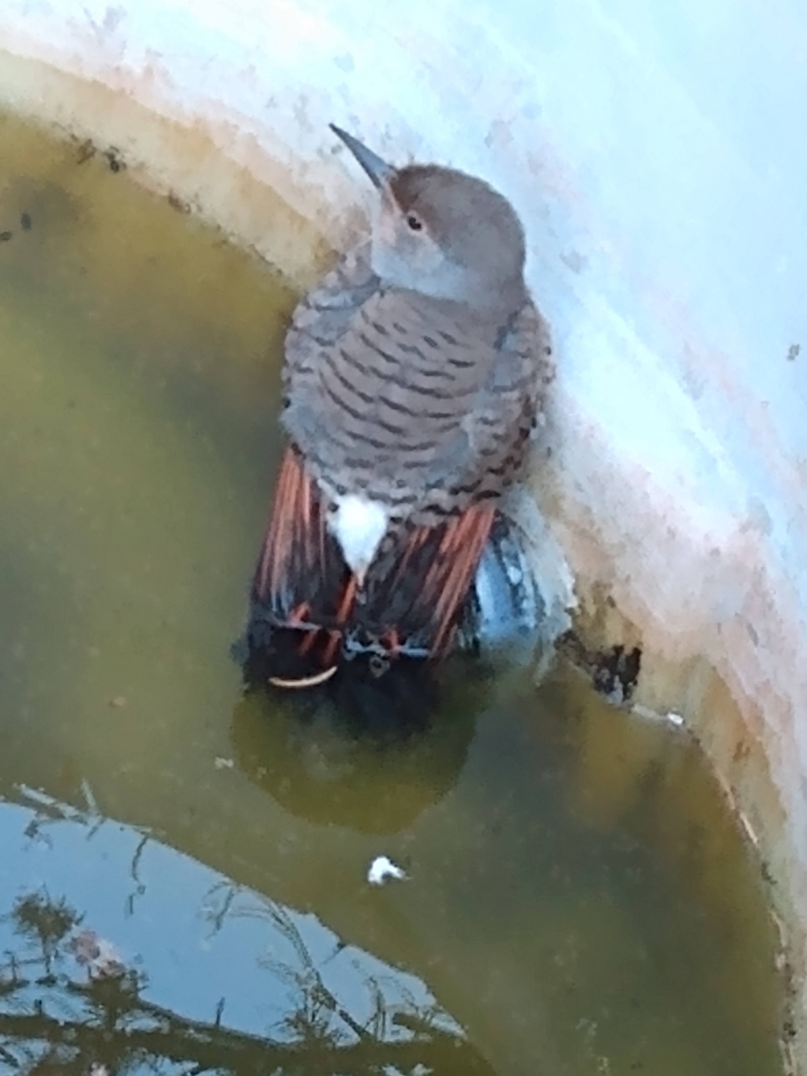 Posted: November 21, 2022 Filed under: Bird Watching, Tales from the Bird Sanctuary | Tags: Bird Rescue, Bird Watching, Birds, Tales from the Bird Sanctuary, Writing to be Read 15 CommentsToday as I was out doing my landscape maintenance for the bird sanctuary, walking on the path which goes around the water feature, which is only half full this time of year as I prepare to drain it for winter, I saw a baby flicker sitting on top of the drainage pipe. I set down my bucket and stopped to have a better look at him, expecting him to fly away as soon as I approached. But he didn’t. Instead, he just sat there, staring back at me, holding very still.