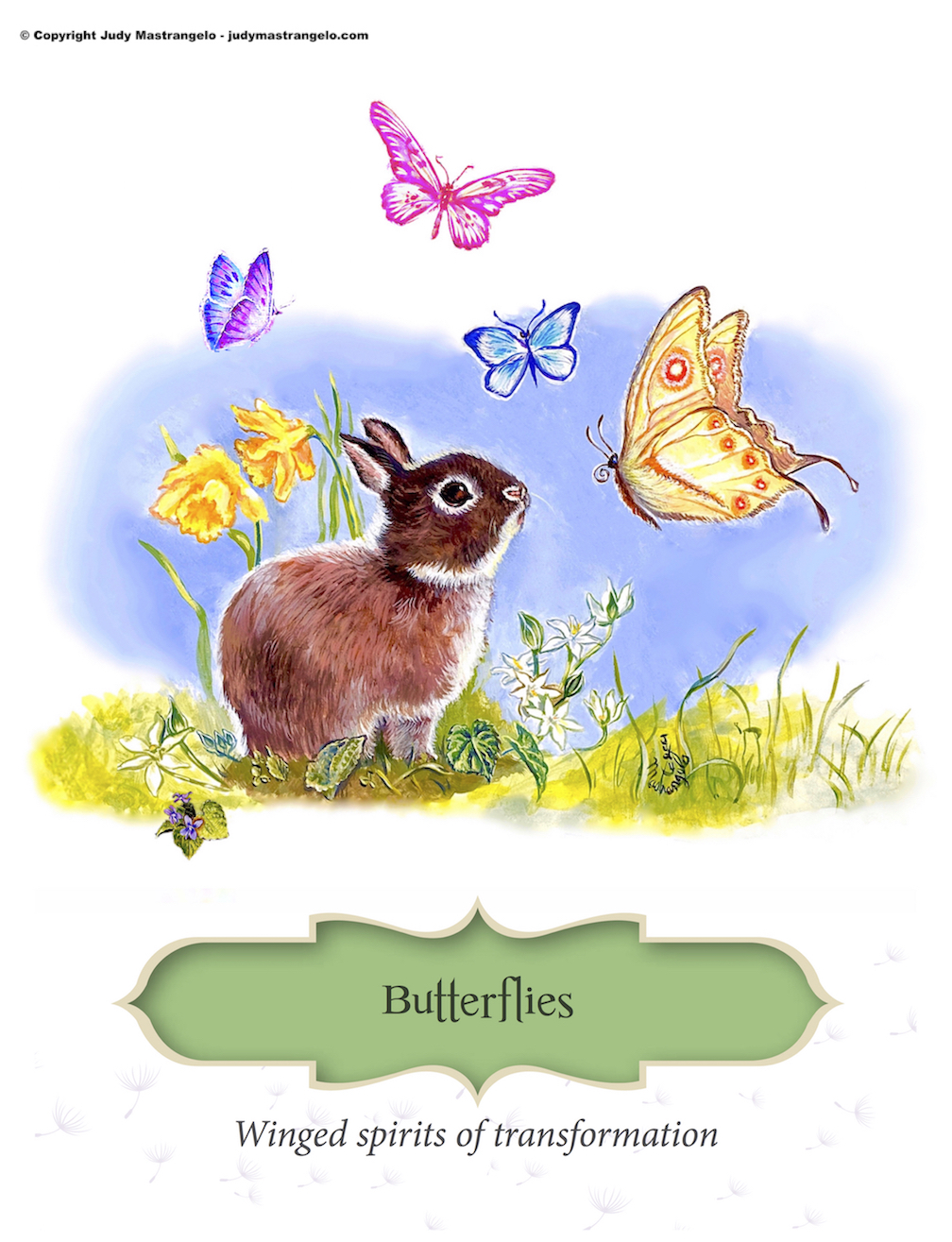 Since I’m a bird lover, I couldn’t help but fall in love with the “Our Animal Friends” card above, which shows us the important roles which animals play in all of our lives and offers ideas on how to identify our animal spirit guides, and “Butterflies”, below speaks of symbols of rebirth and offers ideas fir bringing about your own transformation.