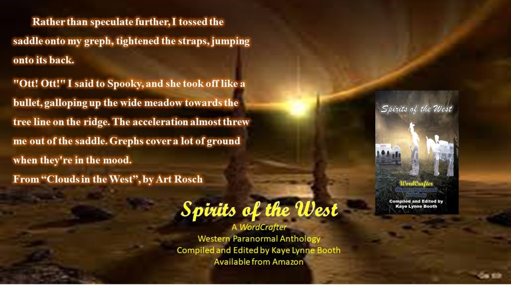 I think the thing that I’m most excited about though, is that WordCrafter will be promoting their newly released western paranormal anthology, Spirits of the West. This anthology contains eight unique stories with hints of paranormal and western flare. Contributing authors include myself, Roberta Eaton Cheadle, Jeff Bowles, Art Rosch, Tom Johnson, and the author of the winning story, “High Desert Rose”, Enid Holden. It’s an antholgy like no other and I am so pleased with how well it turned out.
